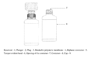 - (ii) the plug (3), with a breakable polymeric membrane (4), adapted to fit into the biphasic connector (5) optionally having a tamper evident band (6) which is further connected from the lower end to the opening (7) of the container (8);