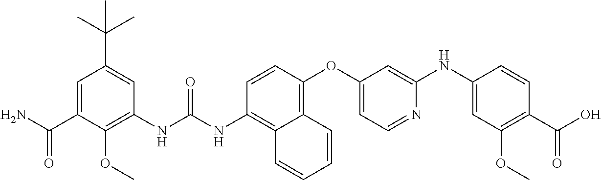 Various compounds, including urea derivatives, are disclosed as inhibiting one or more kinases. Examples of such compounds may be found in WO 99/23091, WO 00/041698, WO 00/043384, WO 00/055139, WO 01/36403, WO 01/4115, WO 02/083628, WO 02/083642, WO 02/092576, WO 02/096876, WO 2003/005999, WO 2003/068223, WO 2003/068228, WO 2003/072569, WO 2004/014870, WO 2004/113352, WO 2005/005396, WO 2005/018624, WO 2005/023761, WO 2005/044825, WO 2006/015775, WO 2006/043090, WO 2007/004749, WO 2007/053394, WO 2013/050756, WO 2013/050757, WO 2014/027209, WO 2014/033446, WO 2014/033447, WO 2014/033448, WO 2014/033449, WO 2014/076484, WO 2014/140582 WO 2014/162121, WO 2014/162122, WO 2014/162126 and WO 2015/092423. Further examples may be found in articles published in: