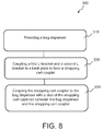 - FIG. 7 shows a front view of shopping cart coupler 262 assembled, without bag dispenser 212 in the figure, so the details of shopping cart coupler 262 can be easily viewed.