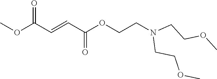 - PHGTXUQHIROZDQ-VOTSOKGWSA-N CCN(CC)CCOC(=O)/C=C/C(=O)OC Chemical compound CCN(CC)CCOC(=O)/C=C/C(=O)OC PHGTXUQHIROZDQ-VOTSOKGWSA-N 0.000 description 2
