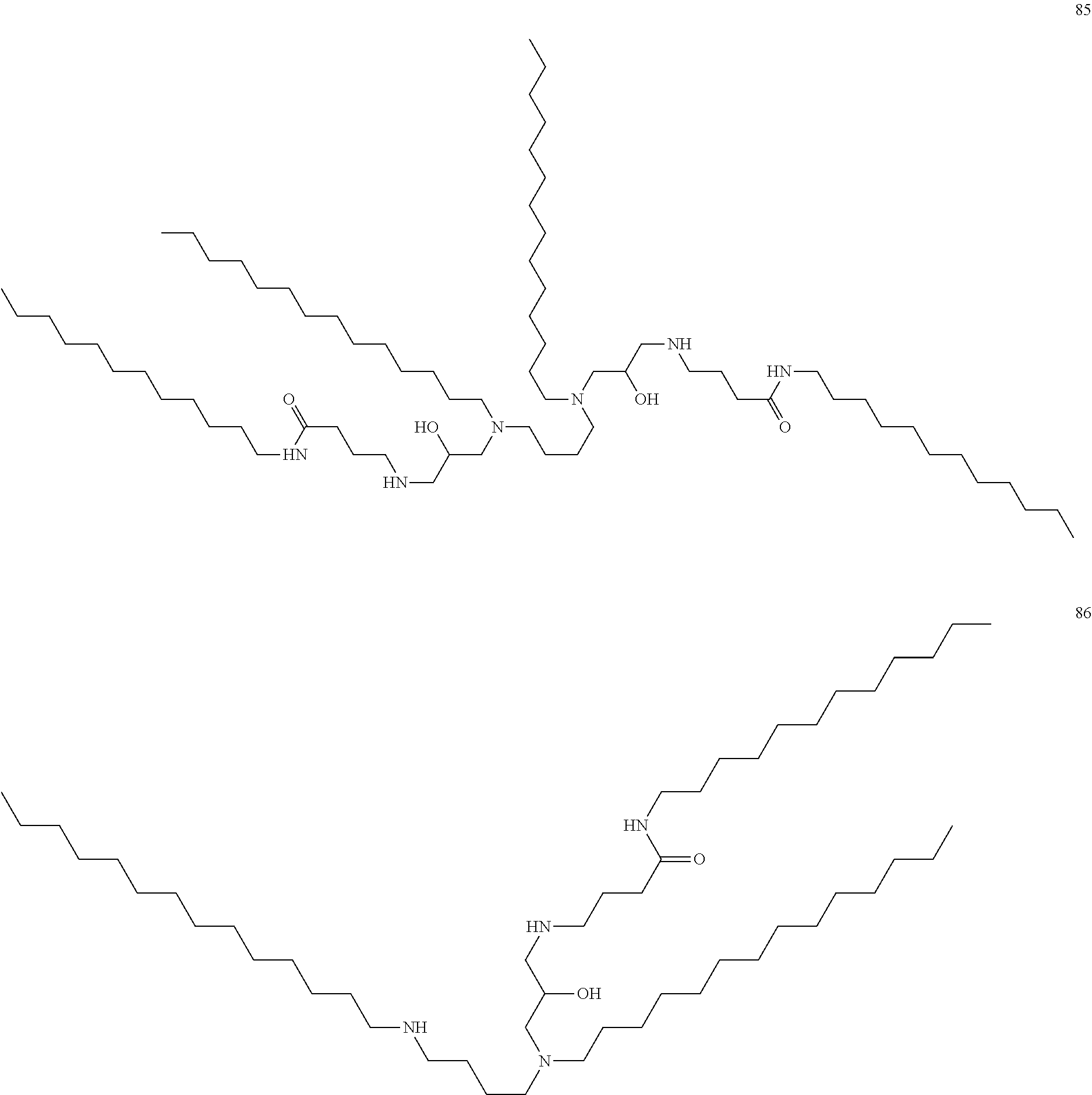 Accordingly, better non-toxic, biodegradable, biocompatible lipids are needed that is easily and economically efficiently prepared to be used to transfect nucleic acids. Such lipids would have several uses, including the delivery of nucleic acids in gene therapy as well as in the packaging and/or delivery of diagnostic, therapeutic, and prophylactic agents. The instant specification describes such new transfection reagents and methods for synthesizing thereof.