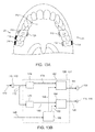 - one or more tooth retaining portions 21 , 23 which in this variation may be placed along the upper row of teeth, may be supported by an arch 19 which may lie adjacent or along the palate of the user.