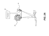 - FIG. 2B is a schematic diagram that shows how patterned light is used for obtaining surface contour information.
