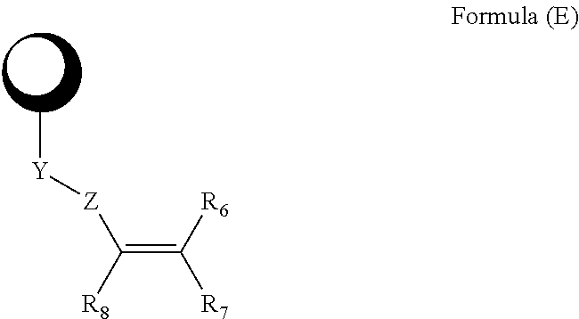 The term “alkenyl” refers to a type of alkyl group in which the first two atoms of the alkyl group form a double bond that is not part of an aromatic group. That is, an alkenyl group begins with the atoms —C(R)═C(R)—R, wherein R refers to the remaining portions of the alkenyl group, which may be the same or different. The alkenyl moiety may be branched, straight chain, or cyclic (in which case, it would also be known as a “cycloalkenyl” group). Depending on the structure, an alkenyl group can be a monoradical or a diradical (i.e., an alkenylene group). Alkenyl groups can be optionally substituted. Non-limiting examples of an alkenyl group include —CH═CH2, —C(CH3)═CH2, —CH═CHCH3, —C(CH3)═CHCH3. Alkenylene groups include, but are not limited to, —CH═CH—, —C(CH3)═CH—, —CH═CHCH2—, —CH═CHCH2CH2— and —C(CH3)═CHCH2—. Alkenyl groups could have 2 to 10 carbons. The alkenyl group could also be a “lower alkenyl” having 2 to 6 carbon atoms.