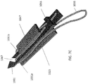FIG. 11C shows the releasable hold region of the sled, where the sled is connected to a tissue penetrator and is holding an end region of a suture against the tissue penetrator.