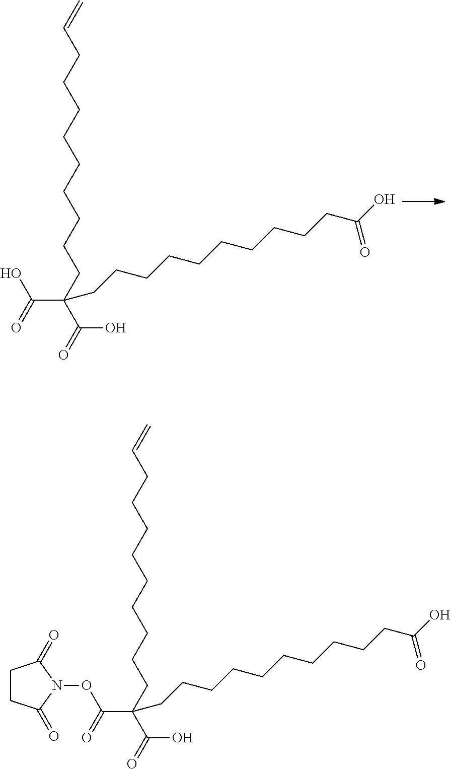 In another embodiment, the invention pertains to a conjugate comprising a biomolecule liked to a fatty acid of Formulae A1 wherein at least one of R2 and R3 is CO2H.