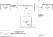 As shown in FIG. 2, the output of the main switching regulator 103 is fed into the switch-mode power supply controller 102, LED driver 101, and management host 104. As shown in FIG. 2, each of the two-channel buck converters of the daughter cards 201 a, 201 b and 201 c provides an output drive signal to the LED source 105. The LED driver 101 provides an input drive signal to each of the two-channel DC/DC converters of the daughter cards 201 a, 201 b, and 201 c, as shown in FIG. 2. The output drive signal from each of the two-channel DC/DC converters of the daughter cards 201 a, 201 b and 201 c is fed back to the LED driver 101. As shown in FIG. 2, the LED driver 101 controls each of the two-buck converters of the daughter cards 201 a, 201 b and 201 c based on the output current and output voltage of the output drive signal.