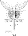 - FIG. 7 is a schematic view of the patient prostate as in FIG. 4 with the delivery of vapor energy to create an ablation region proximate the urethra.
