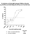 To evaluate the activity of humanised V regions of VR4450, they were cloned into a Fab-Y construct and along with parental rabbit 4450 V regions in Fab-Y expressed transiently and used to generate bispecific antibodies with purified anti-CD22 Fab-X (VR4130) to enable testing of function by measurement inhibition of BCR signalling of B cells in human PBMC.