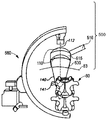 In certain embodiments, x-ray aim 150 may be asymmetric in the image plane (e.g., surfaces 153B may have different lengths or different forms in the image plane) to indicate the orientation of x-ray aim 150 in the image plane. In certain embodiments, x-ray aim 150 may comprise multiple cylinders 153A (appearing as rings in an image plane that is perpendicular to central axis 112), possibly concentric cylinders having different diameters. Any part of x-ray aim 150 and/or member 153 may be configured to provide depth information in the x-ray image with respect to the central axis. For example, surfaces 153B may extend to different depths along central axis 112 (in slanted view) and/or may comprise elements protruding therefrom into the image plane.