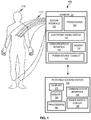 The monitor 120 can, for example, be a patient monitor that is used to monitor various physiological parameters for a patient2 110. With such a variation, the monitor 120 can include a sensor interface 122 that can be used to connect via wired and/or wireless interfaces to one or more physiological sensors and/or medical devices via one or more cables 112 (e.g., ECG electrodes, SPO2 sensor, blood pressure cuffs, apnea detection sensors, respirators, etc.) associated with the patient 110. The monitor 120 can include one or more processors 124 (e.g., programmable data processors, etc.) which can execute various instructions stored in memory 130 of the monitor 120. Various data and graphical user interfaces can be conveyed to a user via an electronic visual display 126. This information can, for example, relate to the measured physiological parameters of the patient 110 and the like (e.g., blood pressure, heart related information, pulse oximetry, respiration information, etc.). Other types of information can also be conveyed by the electronic visual display 126. In some variations, the electronic visual display 126 includes a touch screen interface.