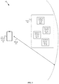 The wireless device 102 can include a combination of hardware, software, and/or firmware to provide communication using a wireless personal area network (WPAN) 104, which can provide power efficient connections while operating over a limited distance. WPAN 104 connections can typically provide for connecting the wireless device 102 to peripheral and associated wireless devices, such as headsets, earpieces, supplemental display devices, and supplemental input/output devices, for example. A representative WPAN 104 can operate in accordance with a communication protocol specified by the Bluetooth SIG, for example Bluetooth Classic and/or Bluetooth Low Energy (BTLE), and/or by Apple Inc. such as an Apple Wireless Direct Link (AWDL). The wireless device 102 can also include a combination of hardware, software, and/or firmware to provide communication using a low-power, wide-bandwidth wireless communication protocol, such as an ultra-wideband (UWB) wireless communication protocol. The wireless device 102 can use the UWB wireless communication protocol to communicate ranging measurement messages to peripheral wireless devices and receive ranging response messages in order to determine a distance and/or angle of arrival for communication between the wireless device 102 and the peripheral wireless devices. The area covered by the UWB communication can be similar to an extent of the WPAN 104. For simplicity of illustration, the UWB communication area is assumed to be approximately coincident with the WPAN 104. In some cases, the UWB communication area can be less than the area covered by the WPAN 104 or more than the area covered by the WPAN 104.
