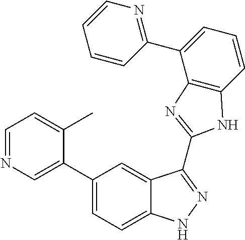 - HEJZDHNLUVKETK-UHFFFAOYSA-N C1=CC2=C(N=C(/C3=N/NC4=CC=C(C5=CN=CC(CN6CCCC6)=C5)C=C43)N2)C(C2=CC=NC=C2)=C1 Chemical compound C1=CC2=C(N=C(/C3=N/NC4=CC=C(C5=CN=CC(CN6CCCC6)=C5)C=C43)N2)C(C2=CC=NC=C2)=C1 HEJZDHNLUVKETK-UHFFFAOYSA-N 0.000 description 2