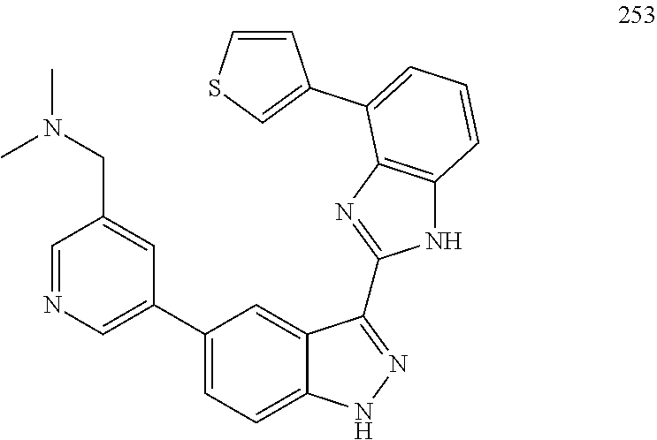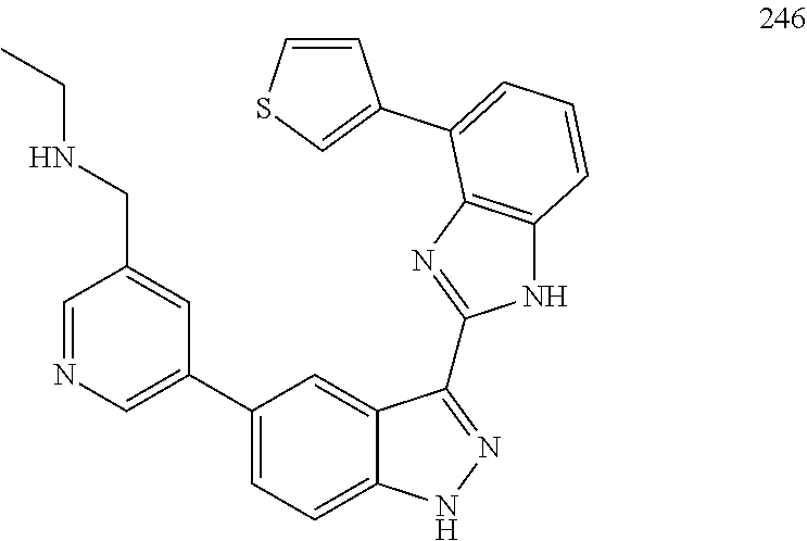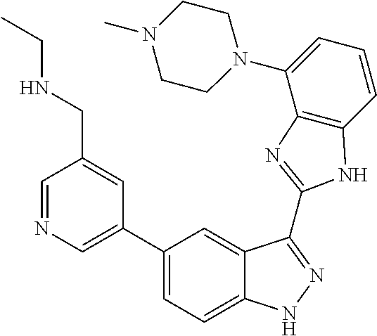 - NTIBSQXOPINGQM-UHFFFAOYSA-N C1=CC2=C(C=C1)NC(C1=CC=C3NN=C(C4=NC5=C(C=CC=C5)N4)C3=C1)=N2.CC1=C(CNC2=CN=CC=C2)C=NC=C1C1=CC=C2NN=C(C3=NC4=C(C=CC=C4)N3)C2=C1.CC1=C(O)C=NC=C1C1=CC=C2NN=C(C3=NC4=C(C=CC=C4)N3)C2=C1.CC1CN(C)CCN1C1=CC2=C(C=C1)N=C(C1=CC=C3NN=C(C4=NC5=C(C=CC=C5)N4)C3=C1)N2.CC1COC(CN(C)C)CN1C1=CC2=C(C=C1)N=C(C1=CC=C3NN=C(C4=NC5=C(C=CC=C5)N4)C3=C1)N2.CCNCC1=C(C)C(C2=CC=C3NN=C(C4=NC5=C(C=CC=C5C5=CN=CC=C5)N4)C3=C2)=CN=C1.CCNCC1=C(C)C(C2=CC=C3NN=C(C4=NC5=C(C=CC=C5N5CCCC5)N4)C3=C2)=CN=C1.CCNCC1=C(C)C(C2=CC=C3NN=C(C4=NC5=C(C=CC=C5N5CCCCC5)N4)C3=C2)=CN=C1.CN1CCN(C2=CC3=C(C=C2)N=C(C2=CC=C4NN=C(C5=NC6=C(C=CC=C6)N5)C4=C2)N3)CC1 Chemical compound C1=CC2=C(C=C1)NC(C1=CC=C3NN=C(C4=NC5=C(C=CC=C5)N4)C3=C1)=N2.CC1=C(CNC2=CN=CC=C2)C=NC=C1C1=CC=C2NN=C(C3=NC4=C(C=CC=C4)N3)C2=C1.CC1=C(O)C=NC=C1C1=CC=C2NN=C(C3=NC4=C(C=CC=C4)N3)C2=C1.CC1CN(C)CCN1C1=CC2=C(C=C1)N=C(C1=CC=C3NN=C(C4=NC5=C(C=CC=C5)N4)C3=C1)N2.CC1COC(CN(C)C)CN1C1=CC2=C(C=C1)N=C(C1=CC=C3NN=C(C4=NC5=C(C=CC=C5)N4)C3=C1)N2.CCNCC1=C(C)C(C2=CC=C3NN=C(C4=NC5=C(C=CC=C5C5=CN=CC=C5)N4)C3=C2)=CN=C1.CCNCC1=C(C)C(C2=CC=C3NN=C(C4=NC5=C(C=CC=C5N5CCCC5)N4)C3=C2)=CN=C1.CCNCC1=C(C)C(C2=CC=C3NN=C(C4=NC5=C(C=CC=C5N5CCCCC5)N4)C3=C2)=CN=C1.CN1CCN(C2=CC3=C(C=C2)N=C(C2=CC=C4NN=C(C5=NC6=C(C=CC=C6)N5)C4=C2)N3)CC1 NTIBSQXOPINGQM-UHFFFAOYSA-N 0.000 description 2