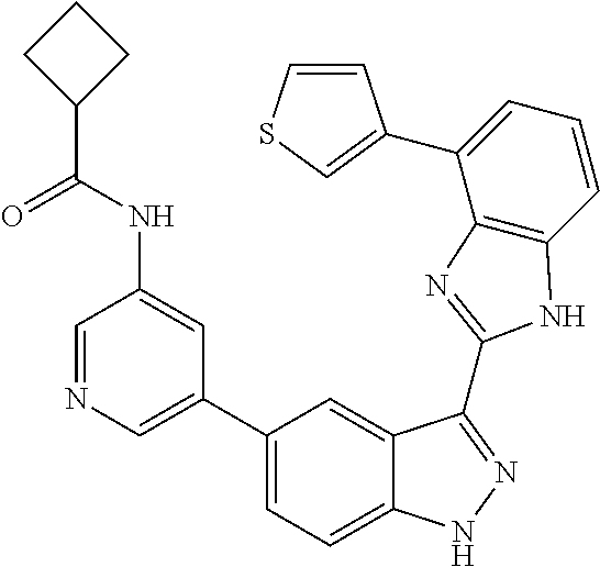 - PRRGLRNRRAMUKE-UHFFFAOYSA-N O=C(NC1=CC(C2=CC=C3N/N=C(/C4=NC5=C(C=CC=C5C5=C(F)C=CC=C5)N4)C3=C2)=CN=C1)C1CCCC1 Chemical compound O=C(NC1=CC(C2=CC=C3N/N=C(/C4=NC5=C(C=CC=C5C5=C(F)C=CC=C5)N4)C3=C2)=CN=C1)C1CCCC1 PRRGLRNRRAMUKE-UHFFFAOYSA-N 0.000 description 3
