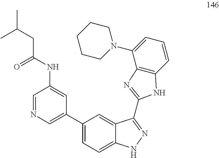 - SCZXPNXXJDSHQH-UHFFFAOYSA-N C1=CC2=C(C=C1)C(C1=CC=C3NN=C(C4=NC5=C(C=CC=C5CN5C=CN=C5)N4)C3=C1)=CN=C2.C1=CC2=C(C=C1)NC(C1=NNC3=CC=C(C4=CN=CC5=C4CCCN5)C=C31)=N2.C1=CC=C(CNC2=CC=CC3=C2C=NC=C3C2=CC=C3NN=C(C4=NC5=C(C=CC=C5)N4)C3=C2)C=C1.CC(=O)NC1=CC=CC2=C1C=NC=C2C1=CC=C2NN=C(C3=NC4=C(C=CC=C4)N3)C2=C1.CC(C)(C)NCC1=CC=CC2=C1N=C(C1=NNC3=CC=C(C4=CN=CC5=C4C=CC=C5)C=C31)N2.CC(C)NCC1=CC=CC2=C1N=C(C1=NNC3=CC=C(C4=CN=CC5=C4C=CC=C5)C=C31)N2.CCN(CC)CC1=CC=CC2=C1N=C(C1=NNC3=CC=C(C4=CN=CC5=C4C=CC=C5)C=C31)N2.CCNCC1=CC=CC2=C1N=C(C1=NNC3=CC=C(C4=CN=CC5=C4C=CC=C5)C=C31)N2.CNC(C)C1=CC=CC2=C1N=C(C1=NNC3=CC=C(C4=CN=CC5=C4C=CC=C5)C=C31)N2.O=C(NC1=CC=CC2=C1C=NC=C2C1=CC=C2NN=C(C3=NC4=C(C=CC=C4)N3)C2=C1)C1=CN=CC=C1 Chemical compound C1=CC2=C(C=C1)C(C1=CC=C3NN=C(C4=NC5=C(C=CC=C5CN5C=CN=C5)N4)C3=C1)=CN=C2.C1=CC2=C(C=C1)NC(C1=NNC3=CC=C(C4=CN=CC5=C4CCCN5)C=C31)=N2.C1=CC=C(CNC2=CC=CC3=C2C=NC=C3C2=CC=C3NN=C(C4=NC5=C(C=CC=C5)N4)C3=C2)C=C1.CC(=O)NC1=CC=CC2=C1C=NC=C2C1=CC=C2NN=C(C3=NC4=C(C=CC=C4)N3)C2=C1.CC(C)(C)NCC1=CC=CC2=C1N=C(C1=NNC3=CC=C(C4=CN=CC5=C4C=CC=C5)C=C31)N2.CC(C)NCC1=CC=CC2=C1N=C(C1=NNC3=CC=C(C4=CN=CC5=C4C=CC=C5)C=C31)N2.CCN(CC)CC1=CC=CC2=C1N=C(C1=NNC3=CC=C(C4=CN=CC5=C4C=CC=C5)C=C31)N2.CCNCC1=CC=CC2=C1N=C(C1=NNC3=CC=C(C4=CN=CC5=C4C=CC=C5)C=C31)N2.CNC(C)C1=CC=CC2=C1N=C(C1=NNC3=CC=C(C4=CN=CC5=C4C=CC=C5)C=C31)N2.O=C(NC1=CC=CC2=C1C=NC=C2C1=CC=C2NN=C(C3=NC4=C(C=CC=C4)N3)C2=C1)C1=CN=CC=C1 SCZXPNXXJDSHQH-UHFFFAOYSA-N 0.000 description 2