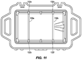 - the cover portion 22 When the cover portion 22 is in a closed position relative to the main portion 12 , as illustrated in FIG. 1 , one or more interior surfaces 24 of the cover portion 22 (shown in a bottom view of an embodiment of the cover portion 22 in FIG. 7B ) may cooperate to at least partially further define the interior portion 16 .