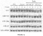 FIG. 12 Northern blot analysis of let-7, miR-122, miR-26a, miR-22 and U6 small nucleolar RNA (U6 snoRNA) in total RNA from liver of C57BL/6 mice injected with 1×1012 genome copies of scAAV9CBGluc (mock), scAAV9CBGlucTuDmiR-122 (anti-miR-122 TuD) or scAAV9CBGlucTuDlet-7 (anti-let-7 TuD) via tail vein injection. The animals were sacrificed 4 weeks after injection and total liver RNA was prepared. Three biological replicates are shown and analyzed to generate FIG. 4 b.