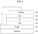 For example, as illustrated in FIG. 2, a current-driven light emitting device is disposed in an anode 20 over a substrate 10. The anode 20 may be formed of a material having a high work function such that the holes may be injected. Non-limiting examples of the material for forming the anode 20 include indium tin oxide (ITO), and a transparent oxide of indium oxide.