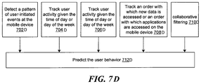 The system can further track an order with which new data is accessed or an order with which applications are accessed on the mobile device, in process 708D, and/or through collaborative filtering, in process 710D. Any number of and combination of the above events can be used to predict user behavior, in step 712D.