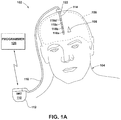 FIGS. 1A and 1B are conceptual diagrams illustrating an example deep brain stimulation (DBS) system 102. System 102 may deliver electrical stimulation therapy to tissue in the brain of a patient 104 to control a patient condition, such as a movement disorder, neurodegenerative impairment, a mood disorder or a seizure disorder of the patient 104. Patient 104 ordinarily will be a human patient. In some cases, however, therapy system 102 may be applied to other mammalian or non-mammalian, non-human patients. While movement disorders and neurodegenerative impairment are primarily referred to herein, in other examples, therapy system 102 may provide therapy to manage symptoms of other patient conditions, such as, but not limited to, seizure disorders (e.g., epilepsy) or mood (or psychological) disorders (e.g., major depressive disorder (MDD), bipolar disorder, anxiety disorders, post traumatic stress disorder, sleep disorders, dysthymic disorder, Tourette's syndrome, addiction disorders, and obsessive-compulsive disorder (OCD)).