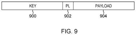 FIG. 9 depicts one example of a variable-length record format used by the Sort Lists instruction, in accordance with an aspect of the present invention;