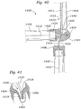 FIG. 40 is an enlarged view of the proximal and distal end portions of the prosthetic device of FIG. 34 after the device is deployed around a native leaflet.