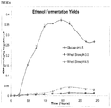 FIG. 6 depicts ethanol yields in grams of ethanol produced per gram of dry wheat straw feedstock or glucose.