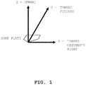 - FIG. 1 shows the x, y, z directions of a Cartesian coordinate system relative to home plate.