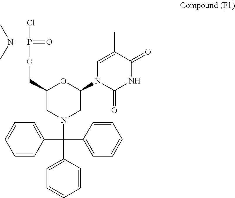 wherein R1 is a support-medium, R3 is selected from the group consisting of trityl, monomethoxytrityl, dimethoxytrityl and trimethoxytrityl, and