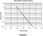 FIG. 7 is a drawing showing the time-current characteristics of the PD depicted in FIGS. 5 and 6;