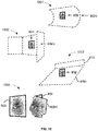 FIG. 10 illustrates exemplary shape embodiments of secondary virtual interactive surfaces 909. In the illustrated embodiments, secondary virtual interactive surfaces 909 is in general non-planar, having a warped, curved or folded shape. The visual content of AR experience 900 may be enhanced by a three-dimensional background, by warping or folding the background scene (e.g., virtual background 909) such that the background is shown on a curved or folded viewing “screen”. The non-planar virtual background 909 “screen” may enhance AR experience 900 by giving user 902 an impression of a realistic appearing background having depth and perspective.