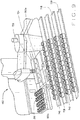 The robot arm 724 includes a gripper assembly 726. The gripper assembly 726 includes gripper heads 902 a, 902 e, shown as five gripper heads in FIG. 9. The gripper heads 902 a, 902 e may be adapted to grip the pucks 308 while on the pallet 302 and may be further adapted to grip the pucks 308 while on the puck conveyors 718, 720, thereby enabling the robot arm 724 to remove the pucks 308 from the pallet 302 and/or from the puck conveyors 718, 720. The gripper heads 902 a, 902 e may be further adapted to release the pucks 308, thereby enabling the robot arm 724 to place the pucks 308 onto the puck conveyors 718, 720 and/or onto the pallet 302. The gripper heads 902 a, 902 e may be independently actuated, pneumatic gripper heads. In an example embodiment, the gripper heads 902 a, 902 e are spring assist closed. In another an example embodiment, the gripper heads 902 a, 902 e are spring assist open. While five gripper heads are shown in FIG. 9 including the gripper heads 902 a, 902 e, the gripper assembly 726 may include a greater or lesser number of gripper heads. In some embodiments, the number of gripper heads included in the gripper assembly matches the number of cavities 306 in a row or column of the pallet 302.