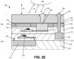 FIG. 2E is a cross-sectional schematic of another example display apparatus 280. The display apparatus 280 depicted in FIG. 2E is a monolithically integrated structure of the display apparatus 270 described above with reference to FIG. 2D. Monolithic integration of the display apparatus 280 includes a display device 202 and detector device 204 that are fabricated using monolithic fabrication techniques, e.g., epitaxial and/or lateral growth techniques, that does not involve a mechanical bonding step to unify the display device 202 and the detector device 204 at the interface 242.