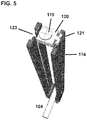 FIG. 4 shows another embodiment for a screw cap placement mechanism, as compared to a simple cap 106 as shown in FIGS. 20A and 22A. In this embodiment, the screw cap portion comparable to 106 (in FIGS. 20A and 22A) is 119. The screw cap portion 119 can be delivered to retain a rod implant (such as rod 104 in FIG. 20A) in the seat of a screw. The screw cap portion 119 can stay on permanently or can be removable to retain the rod. The remaining portion 120 is a screw cap guidance element to be used with extended blades rather than guiding the cap directly down guidance wires (as in FIGS. 20A and 22A). The screw cap guidance element 120 has a threaded hole 122 with which the screw cap engages and a protruding portion 121. The protruding portion or extensor element 121 engages with a corresponding cutout 123 in the extended guidance element (blade, tab, arm) 114 as shown in FIG. 5.