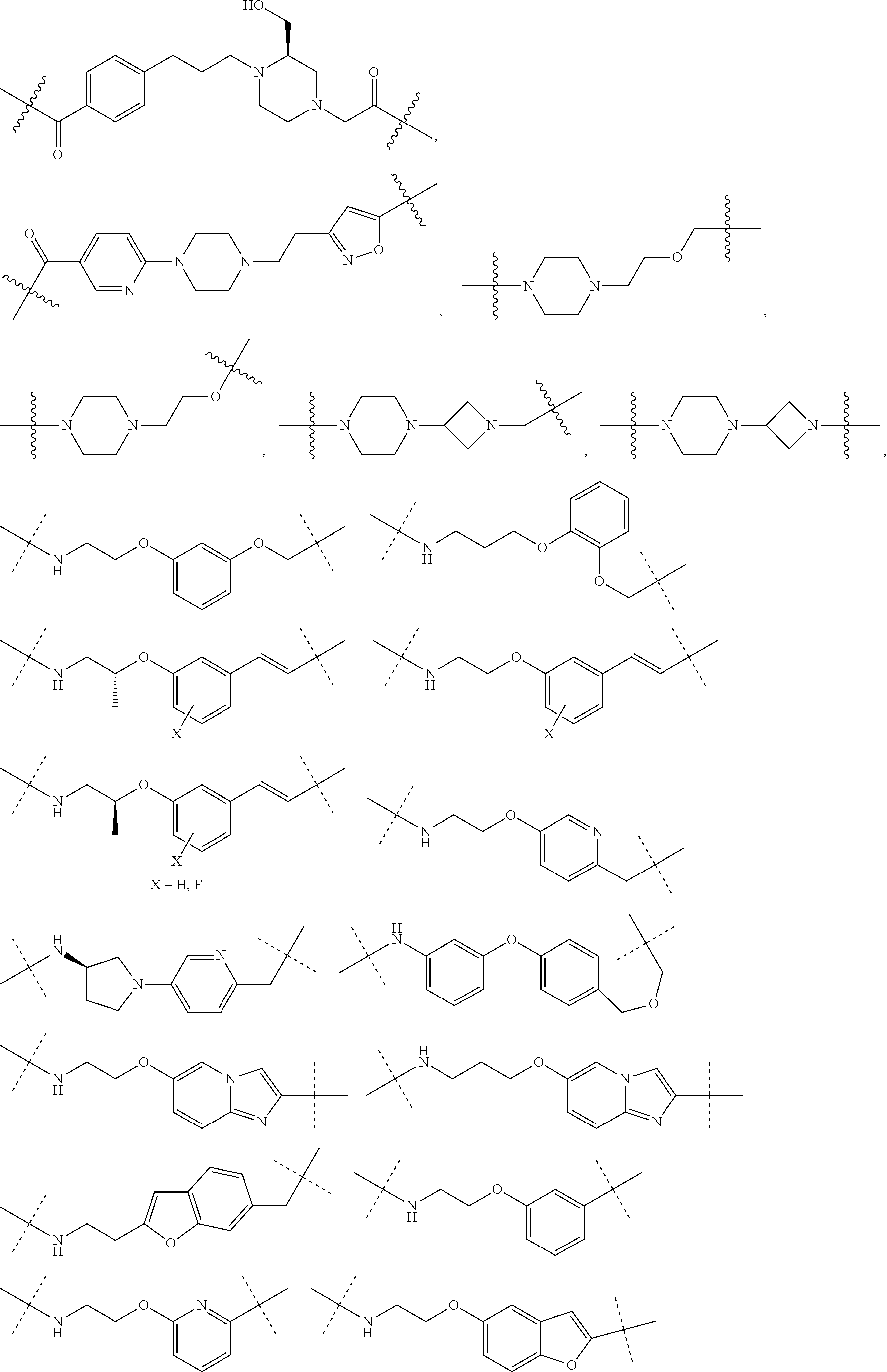 - QUAPSGVGIJAJHR-UHFFFAOYSA-N C=C(CN1CCC(CN2CCC(C)CC2)CC1)NC.CC1=CC=C(OCC2=NOC(C)=C2)C=C1.CC1=CC=C(OCCC2=NOC(C)=C2)C=C1.CC1=CC=C(OCCCC2=NOC(C)=C2)C=C1.CC1=CC=C(OCCCCC2=NOC(C)=C2)C=C1.CC1=CC=C(OCCCCCC2=NOC(C)=C2)C=C1.CC1=CC=C(OCCOCC2=NOC(C)=C2)C=C1.CC1=CC=C(OCCOCCC2=NOC(C)=C2)C=C1.CCCCCC(=O)NC.CCCCCCC(=O)NC.CCCCCCOC(=O)NC.CCCCCCOCC(=O)NC.CCCCOCC(=O)NC.CCCOCC(=O)NC.CNC(=O)CC1=CC=C(C)C=C1.CNC(=O)CC1CCN(CCN2CCC(C)CC2)CC1.CNC(=O)CC1CCN(CCOCCOC2=CC=C(C)C=C2)CC1.CNC(=O)CN1CCC(CCN2CCC(C)CC2)CC1.CNC(=O)CN1CCC(N2CCC(C)CC2)CC1.CNC(=O)CN1CCN(CCCCCOC2=CC=C(C)C=C2)CC1.CNC(=O)CN1CCN(CCCCOC2=CC=C(C)C=C2)CC1.CNC(=O)CN1CCN(CCN2CCC(C)CC2)CC1.CNC(=O)CN1CCN(CCOCCOC2=CC=C(C)C=C2)CC1 Chemical compound C=C(CN1CCC(CN2CCC(C)CC2)CC1)NC.CC1=CC=C(OCC2=NOC(C)=C2)C=C1.CC1=CC=C(OCCC2=NOC(C)=C2)C=C1.CC1=CC=C(OCCCC2=NOC(C)=C2)C=C1.CC1=CC=C(OCCCCC2=NOC(C)=C2)C=C1.CC1=CC=C(OCCCCCC2=NOC(C)=C2)C=C1.CC1=CC=C(OCCOCC2=NOC(C)=C2)C=C1.CC1=CC=C(OCCOCCC2=NOC(C)=C2)C=C1.CCCCCC(=O)NC.CCCCCCC(=O)NC.CCCCCCOC(=O)NC.CCCCCCOCC(=O)NC.CCCCOCC(=O)NC.CCCOCC(=O)NC.CNC(=O)CC1=CC=C(C)C=C1.CNC(=O)CC1CCN(CCN2CCC(C)CC2)CC1.CNC(=O)CC1CCN(CCOCCOC2=CC=C(C)C=C2)CC1.CNC(=O)CN1CCC(CCN2CCC(C)CC2)CC1.CNC(=O)CN1CCC(N2CCC(C)CC2)CC1.CNC(=O)CN1CCN(CCCCCOC2=CC=C(C)C=C2)CC1.CNC(=O)CN1CCN(CCCCOC2=CC=C(C)C=C2)CC1.CNC(=O)CN1CCN(CCN2CCC(C)CC2)CC1.CNC(=O)CN1CCN(CCOCCOC2=CC=C(C)C=C2)CC1 QUAPSGVGIJAJHR-UHFFFAOYSA-N 0.000 description 1