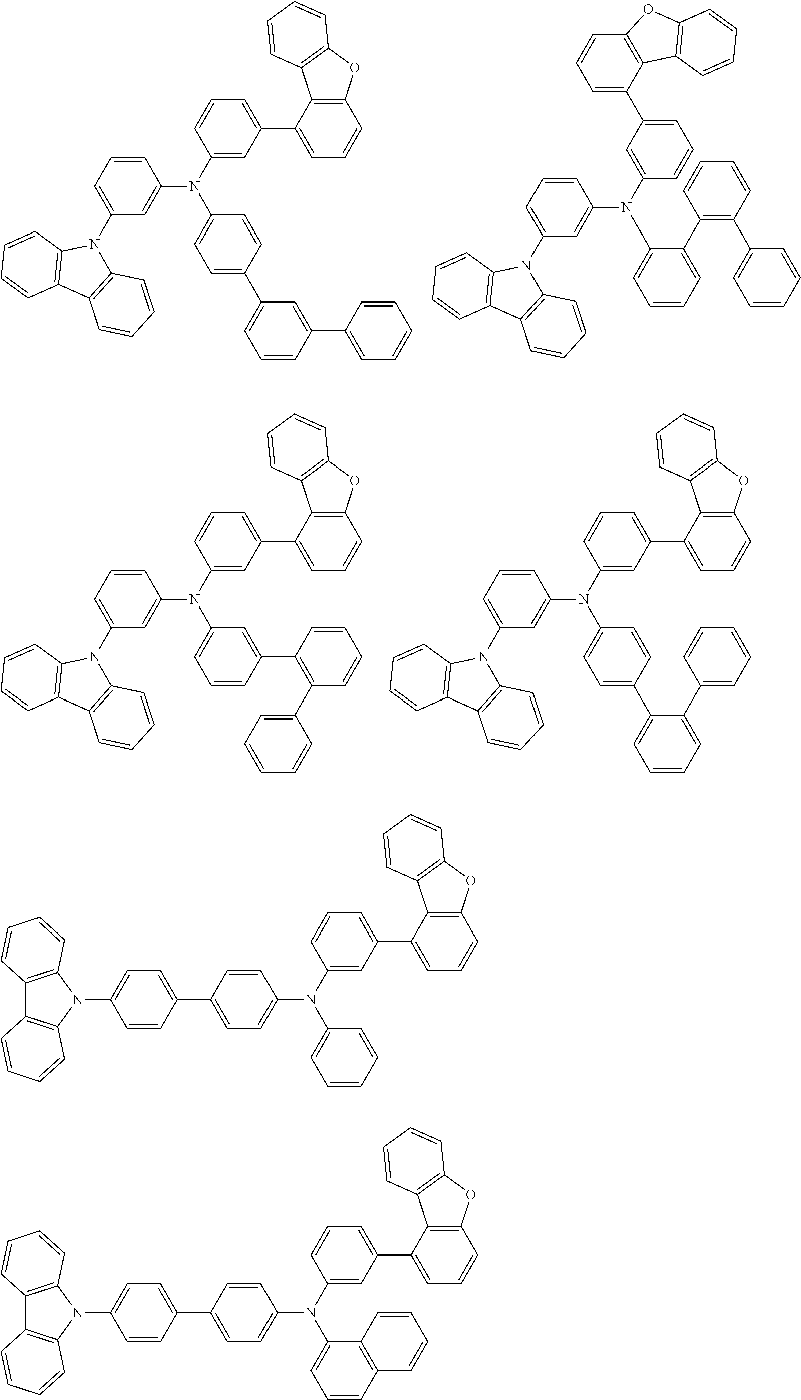 - SJSHFEWGTJGVFA-UHFFFAOYSA-N C1=CC(C2=CC3=C(C=CC=C3)C=C2)=CC(N(C2=CC(C3=CC=CC4=C3C3=C(C=CC=C3)O4)=CC=C2)C2=CC(N3C4=C(C=CC=C4)C4=C3C=CC=C4)=CC=C2)=C1.C1=CC(C2=CC=CC3=C2C=CC=C3)=CC(N(C2=CC(C3=CC=CC4=C3C3=C(C=CC=C3)O4)=CC=C2)C2=CC(N3C4=C(C=CC=C4)C4=C3C=CC=C4)=CC=C2)=C1.C1=CC(N(C2=CC=C(C3=CC=CC4=C3C=CC=C4)C=C2)C2=CC(N3C4=C(C=CC=C4)C4=C3C=CC=C4)=CC=C2)=CC(C2=CC=CC3=C2C2=C(C=CC=C2)O3)=C1.C1=CC=C(C2=CC(N(C3=CC(C4=CC=CC5=C4C4=C(C=CC=C4)O5)=CC=C3)C3=CC(N4C5=C(C=CC=C5)C5=C4C=CC=C5)=CC=C3)=CC=C2)C=C1.C1=CC=C(C2=CC=C(N(C3=CC(C4=CC=CC5=C4C4=C(C=CC=C4)O5)=CC=C3)C3=CC(N4C5=C(C=CC=C5)C5=C4C=CC=C5)=CC=C3)C=C2)C=C1.C1=CC=C(C2=CC=CC=C2N(C2=CC(C3=CC=CC4=C3C3=C(C=CC=C3)O4)=CC=C2)C2=CC(N3C4=C(C=CC=C4)C4=C3C=CC=C4)=CC=C2)C=C1.C1=CC=C(N(C2=CC(C3=CC=CC4=C3C3=C(C=CC=C3)O4)=CC=C2)C2=CC(N3C4=C(C=CC=C4)C4=C3C=CC=C4)=CC=C2)C(C2=C3C=CC=CC3=CC=C2)=C1.C1=CC=C(N(C2=CC(C3=CC=CC4=C3C3=C(C=CC=C3)O4)=CC=C2)C2=CC(N3C4=C(C=CC=C4)C4=C3C=CC=C4)=CC=C2)C(C2=CC3=C(C=CC=C3)C=C2)=C1 Chemical compound C1=CC(C2=CC3=C(C=CC=C3)C=C2)=CC(N(C2=CC(C3=CC=CC4=C3C3=C(C=CC=C3)O4)=CC=C2)C2=CC(N3C4=C(C=CC=C4)C4=C3C=CC=C4)=CC=C2)=C1.C1=CC(C2=CC=CC3=C2C=CC=C3)=CC(N(C2=CC(C3=CC=CC4=C3C3=C(C=CC=C3)O4)=CC=C2)C2=CC(N3C4=C(C=CC=C4)C4=C3C=CC=C4)=CC=C2)=C1.C1=CC(N(C2=CC=C(C3=CC=CC4=C3C=CC=C4)C=C2)C2=CC(N3C4=C(C=CC=C4)C4=C3C=CC=C4)=CC=C2)=CC(C2=CC=CC3=C2C2=C(C=CC=C2)O3)=C1.C1=CC=C(C2=CC(N(C3=CC(C4=CC=CC5=C4C4=C(C=CC=C4)O5)=CC=C3)C3=CC(N4C5=C(C=CC=C5)C5=C4C=CC=C5)=CC=C3)=CC=C2)C=C1.C1=CC=C(C2=CC=C(N(C3=CC(C4=CC=CC5=C4C4=C(C=CC=C4)O5)=CC=C3)C3=CC(N4C5=C(C=CC=C5)C5=C4C=CC=C5)=CC=C3)C=C2)C=C1.C1=CC=C(C2=CC=CC=C2N(C2=CC(C3=CC=CC4=C3C3=C(C=CC=C3)O4)=CC=C2)C2=CC(N3C4=C(C=CC=C4)C4=C3C=CC=C4)=CC=C2)C=C1.C1=CC=C(N(C2=CC(C3=CC=CC4=C3C3=C(C=CC=C3)O4)=CC=C2)C2=CC(N3C4=C(C=CC=C4)C4=C3C=CC=C4)=CC=C2)C(C2=C3C=CC=CC3=CC=C2)=C1.C1=CC=C(N(C2=CC(C3=CC=CC4=C3C3=C(C=CC=C3)O4)=CC=C2)C2=CC(N3C4=C(C=CC=C4)C4=C3C=CC=C4)=CC=C2)C(C2=CC3=C(C=CC=C3)C=C2)=C1 SJSHFEWGTJGVFA-UHFFFAOYSA-N 0.000 description 1