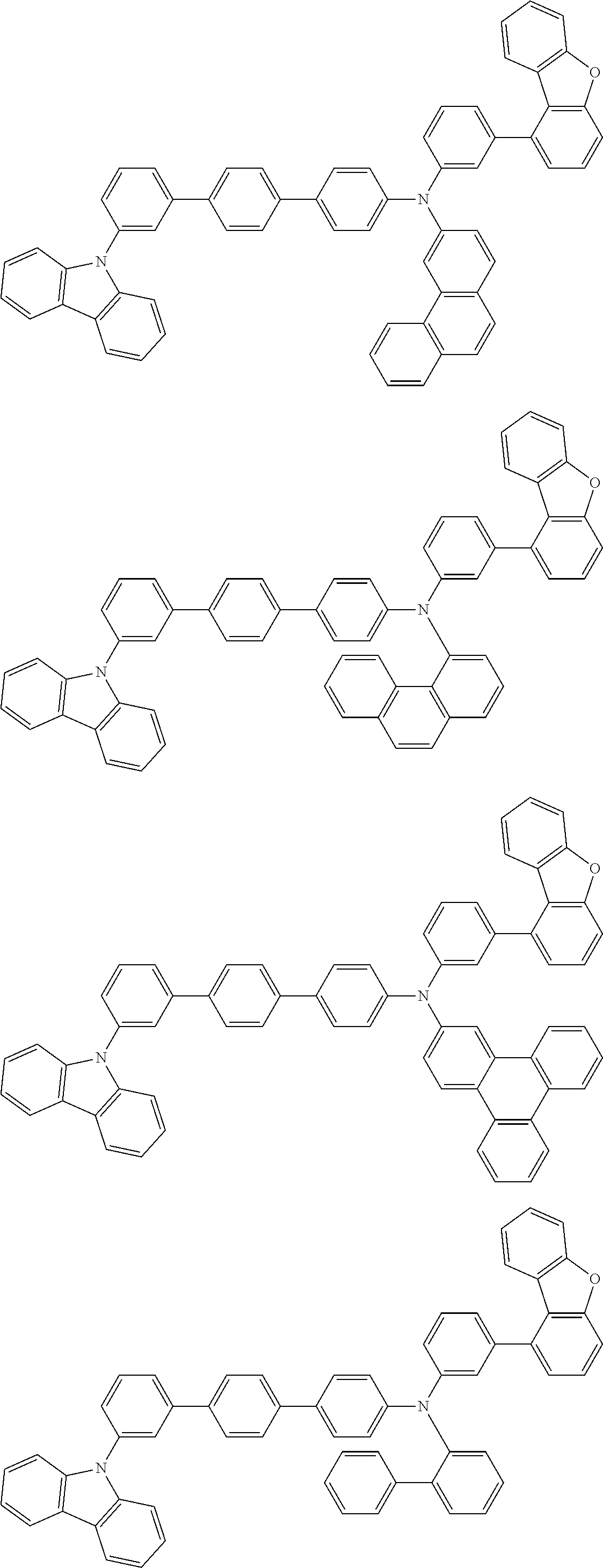 - PLFDWQWAWVDFDD-UHFFFAOYSA-N C1=CC(C2=C3C=CC=CC3=C3C=CC=CC3=C2)=CC(N(C2=CC=C(C3=CC=C(C4=CC=CC(N5C6=C(C=CC=C6)C6=C5C=CC=C6)=C4)C=C3)C=C2)C2=CC=C(C3=C4C(=CC=C3)OC3=C4C=CC=C3)C=C2)=C1.C1=CC2=CC(C3=CC=C(N(C4=CC=C(C5=CC=C(C6=CC=CC(N7C8=C(C=CC=C8)C8=C7C=CC=C8)=C6)C=C5)C=C4)C4=CC=C(C5=C6C(=CC=C5)OC5=C6C=CC=C5)C=C4)C=C3)=C3C=CC=CC3=C2C=C1.C1=CC2=CC=C(C3=CC=C(N(C4=CC=C(C5=CC=C(C6=CC=CC(N7C8=C(C=CC=C8)C8=C7C=CC=C8)=C6)C=C5)C=C4)C4=CC=C(C5=C6C(=CC=C5)OC5=C6C=CC=C5)C=C4)C=C3)C=C2C=C1.C1=CC=C(N(C2=CC=C(C3=CC=C(C4=CC=CC(N5C6=C(C=CC=C6)C6=C5C=CC=C6)=C4)C=C3)C=C2)C2=CC=C(C3=C4C(=CC=C3)OC3=C4C=CC=C3)C=C2)C(C2=C3C=CC=CC3=C3C=CC=CC3=C2)=C1 Chemical compound C1=CC(C2=C3C=CC=CC3=C3C=CC=CC3=C2)=CC(N(C2=CC=C(C3=CC=C(C4=CC=CC(N5C6=C(C=CC=C6)C6=C5C=CC=C6)=C4)C=C3)C=C2)C2=CC=C(C3=C4C(=CC=C3)OC3=C4C=CC=C3)C=C2)=C1.C1=CC2=CC(C3=CC=C(N(C4=CC=C(C5=CC=C(C6=CC=CC(N7C8=C(C=CC=C8)C8=C7C=CC=C8)=C6)C=C5)C=C4)C4=CC=C(C5=C6C(=CC=C5)OC5=C6C=CC=C5)C=C4)C=C3)=C3C=CC=CC3=C2C=C1.C1=CC2=CC=C(C3=CC=C(N(C4=CC=C(C5=CC=C(C6=CC=CC(N7C8=C(C=CC=C8)C8=C7C=CC=C8)=C6)C=C5)C=C4)C4=CC=C(C5=C6C(=CC=C5)OC5=C6C=CC=C5)C=C4)C=C3)C=C2C=C1.C1=CC=C(N(C2=CC=C(C3=CC=C(C4=CC=CC(N5C6=C(C=CC=C6)C6=C5C=CC=C6)=C4)C=C3)C=C2)C2=CC=C(C3=C4C(=CC=C3)OC3=C4C=CC=C3)C=C2)C(C2=C3C=CC=CC3=C3C=CC=CC3=C2)=C1 PLFDWQWAWVDFDD-UHFFFAOYSA-N 0.000 description 1