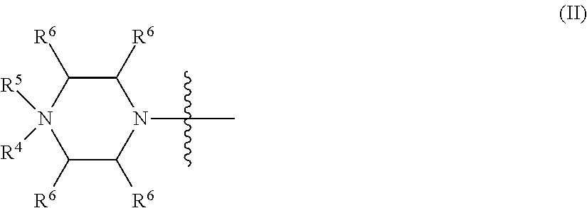 (b1) cationic linkage (b1), wherein X═NR1R2 and Y═O, and NR1R2 represents an optional substituted piperazino group, such that R1R2═