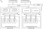 In implementations, storage array 102A-B may implement two or more storage array controllers 110. For example, storage array 102A may include storage array controllers 110A and storage array controllers 110B. At a given instance, a single storage array controller 110 (e.g., storage array controller 110A) of a storage system 100 may be designated with primary status (also referred to as “primary controller” herein), and other storage array controllers 110 (e.g., storage array controller 110A) may be designated with secondary status (also referred to as “secondary controller” herein). The primary controller may have particular rights, such as permission to alter data in persistent storage resource 170A-B (e.g., writing data to persistent storage resource 170A-B). At least some of the rights of the primary controller may supersede the rights of the secondary controller. For instance, the secondary controller may not have permission to alter data in persistent storage resource 170A-B when the primary controller has the right. The status of storage array controllers 110 may change. For example, storage array controller 110A may be designated with secondary status, and storage array controller 110B may be designated with primary status.