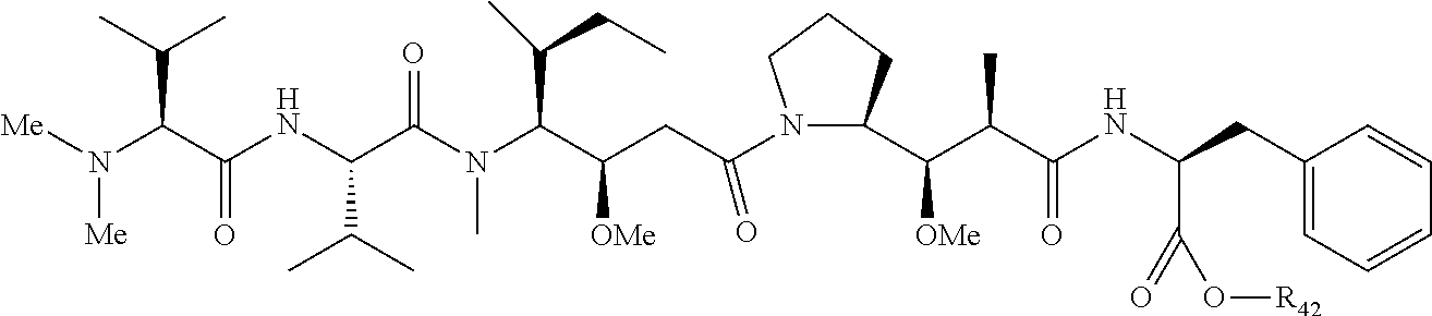- JSPBFIMXTWCXCB-SLTVSENNSA-N CC[C@H](C)[C@@H]([C@@H](CC(=O)N1CCC[C@H]1[C@H](OC)[C@@H](C)C(=O)N[C@@H](CC1=CC=CC=C1)C(=O)NCCCOC(=O)C(C)NC(=O)CCNC(=O)OCC(NC(=O)CNC(=O)CNC(=O)CNC(=O)CNC(=O)CCNC(=O)CCOCC(C)(C)C)C(=O)NCCOC)OC)N(C)C(=O)C(NC(=O)[C@H](C(C)C)N(C)C)C(C)C Chemical compound CC[C@H](C)[C@@H]([C@@H](CC(=O)N1CCC[C@H]1[C@H](OC)[C@@H](C)C(=O)N[C@@H](CC1=CC=CC=C1)C(=O)NCCCOC(=O)C(C)NC(=O)CCNC(=O)OCC(NC(=O)CNC(=O)CNC(=O)CNC(=O)CNC(=O)CCNC(=O)CCOCC(C)(C)C)C(=O)NCCOC)OC)N(C)C(=O)C(NC(=O)[C@H](C(C)C)N(C)C)C(C)C JSPBFIMXTWCXCB-SLTVSENNSA-N 0.000 description 2