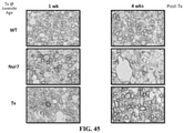 FIGS. 46 and 47 show data relating to the expanded therapeutic window for treatment of a mouse model of CD in males (FIG. 46) and females (FIG. 47). Improved performance on the rotarod was observed in treated Nur7 mice compared to untreated Nur7 mice at 52 wks of age, indicating that ASPA gene therapy is capable of reversing CD pathology.