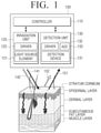 The controller 110 may control the irradiation unit 120 to irradiate at least one light into the skin. The controller 110 may detect at least one reflective light based on the amount of moisture in the skin by controlling the detection unit 130.