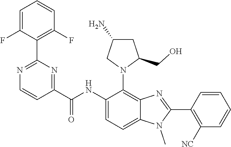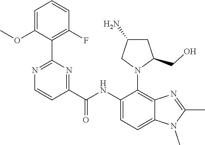 - ZGGCEWPEAZSUEJ-MSOLQXFVSA-N Cn1c(-c2ccncc2F)nc2c(N3C[C@H](N)C[C@H]3CO)c(CC(=O)c3ccnc(-c4c(F)cccc4F)n3)ccc21 Chemical compound Cn1c(-c2ccncc2F)nc2c(N3C[C@H](N)C[C@H]3CO)c(CC(=O)c3ccnc(-c4c(F)cccc4F)n3)ccc21 ZGGCEWPEAZSUEJ-MSOLQXFVSA-N 0.000 description 1