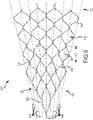 - each cell comprises first and second struts (i) bounding a proximal portion of the cell and (ii) diverging in a distal direction, and third and fourth struts (i) bounding a distal portion of the cell and (ii) converging in a distal direction, the maximum cell width is measured from an intersection of the first strut and the third strut to an intersection of the second strut with the fourth strut.