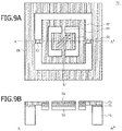 FIGS. 9A and 9B are schematic diagrams illustrating the movable mirror portion of the two-dimensional optical scanning mirror device according to Example 1 of the present invention.