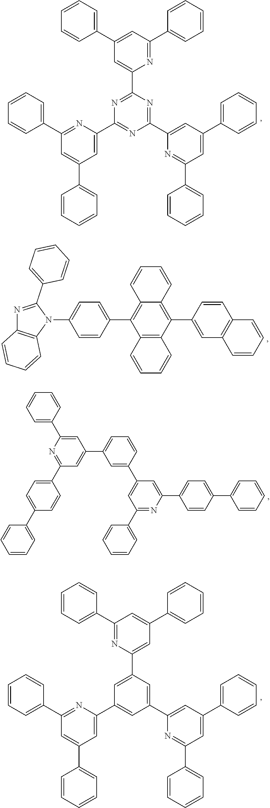 - VSTPOAUDIYKVHN-UHFFFAOYSA-N CC1(C)c2cc(-c3ccccc3)cc3ccc4cc(-c5nc(-c6ccccc6)nc(-c6ccccc6)n5)cc1c4c23.c1ccc(-c2ccc(-c3ccccc3)c3c2-c2cccc4c(-c5ccc(-c6nc7ccccc7n6-c6ccccc6)cc5)ccc-3c24)cc1.c1ccc(-c2ccc(-c3nc(-c4ccc(-c5ccccc5)cc4)nc(-c4cccc5ccccc45)n3)cc2)cc1.c1cncc(-c2ccc(-c3nc(-c4cccc5ccccc45)c4ccc5ccccc5c4n3)cc2)c1 Chemical compound CC1(C)c2cc(-c3ccccc3)cc3ccc4cc(-c5nc(-c6ccccc6)nc(-c6ccccc6)n5)cc1c4c23.c1ccc(-c2ccc(-c3ccccc3)c3c2-c2cccc4c(-c5ccc(-c6nc7ccccc7n6-c6ccccc6)cc5)ccc-3c24)cc1.c1ccc(-c2ccc(-c3nc(-c4ccc(-c5ccccc5)cc4)nc(-c4cccc5ccccc45)n3)cc2)cc1.c1cncc(-c2ccc(-c3nc(-c4cccc5ccccc45)c4ccc5ccccc5c4n3)cc2)c1 VSTPOAUDIYKVHN-UHFFFAOYSA-N 0.000 description 1
