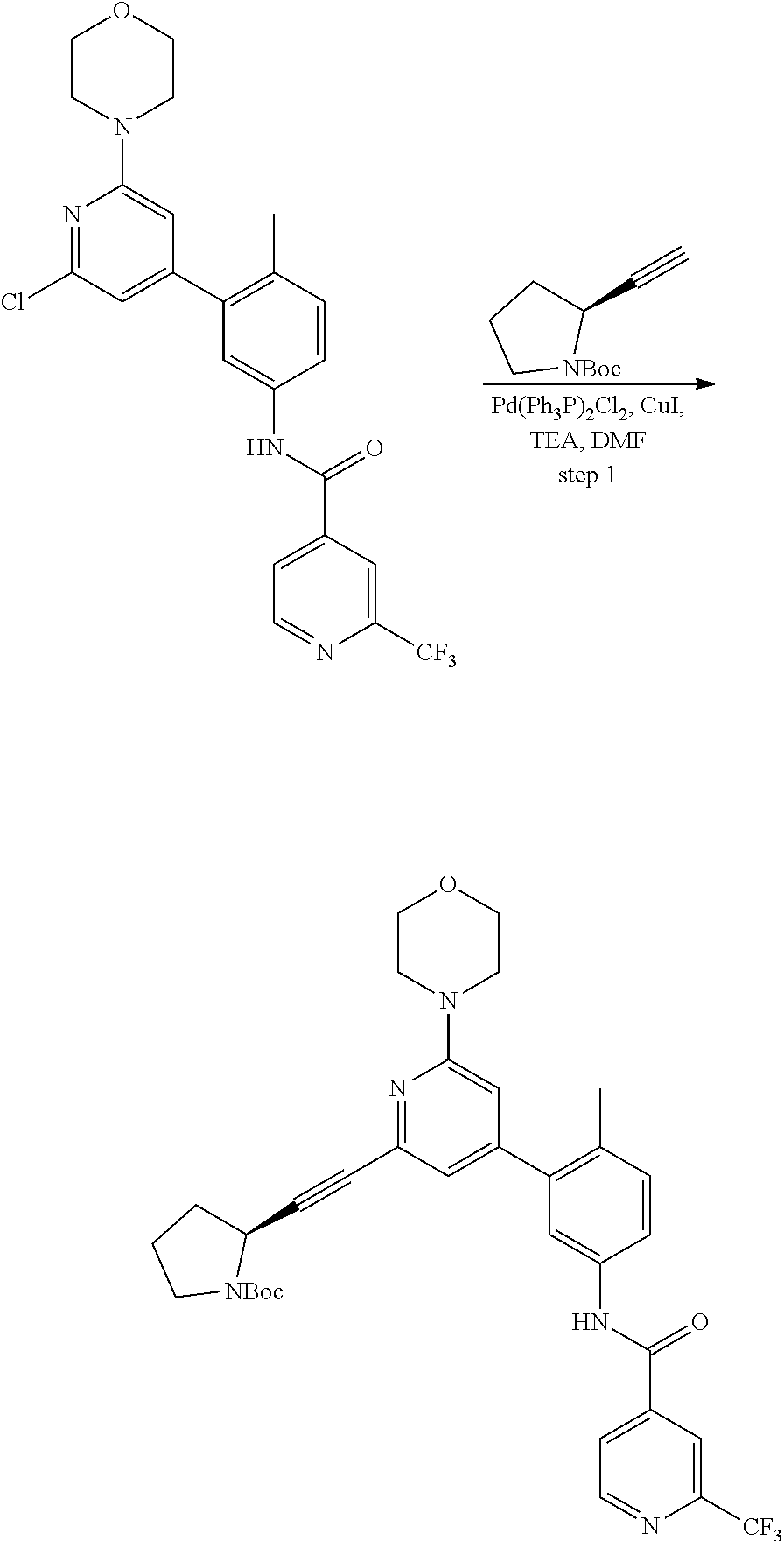 N-(4-methyl-3-(5-morpholino-6- (piperidin-4-ylethynyl)pyridin-3- yl)phenyl)-2- (trifluoromethyl)isonicotinamide |