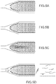 FIGS. 5A-5D are schematics illustrating aspects of a GAMA process workflow involving the use of a microfluidic channel system of the present invention. FIG. 5A: Flow moves from left to right in this schematic and fluids can be exchanged within the input reservoir to control the local environment within the channels. FIG. 5B: Artist depiction of a single cell that is trapped within the apex of the micropillar array. Side walls enclosing the micropillar array prevent additional cells flowing into the channel from having their DNA immobilized within the pillar array. FIG. 5C: Upon cell lysis, genomic DNA from the trapped cell will become entangled in downstream pillars and can be visualized via fluorescence staining. FIG. 5D: Reagents for whole genome amplification is flowed into the channel. As amplification occurs, product strands elongate originating from the template, but as they depart from the template genomic DNA, they are washed downstream and collected in output reservoirs.