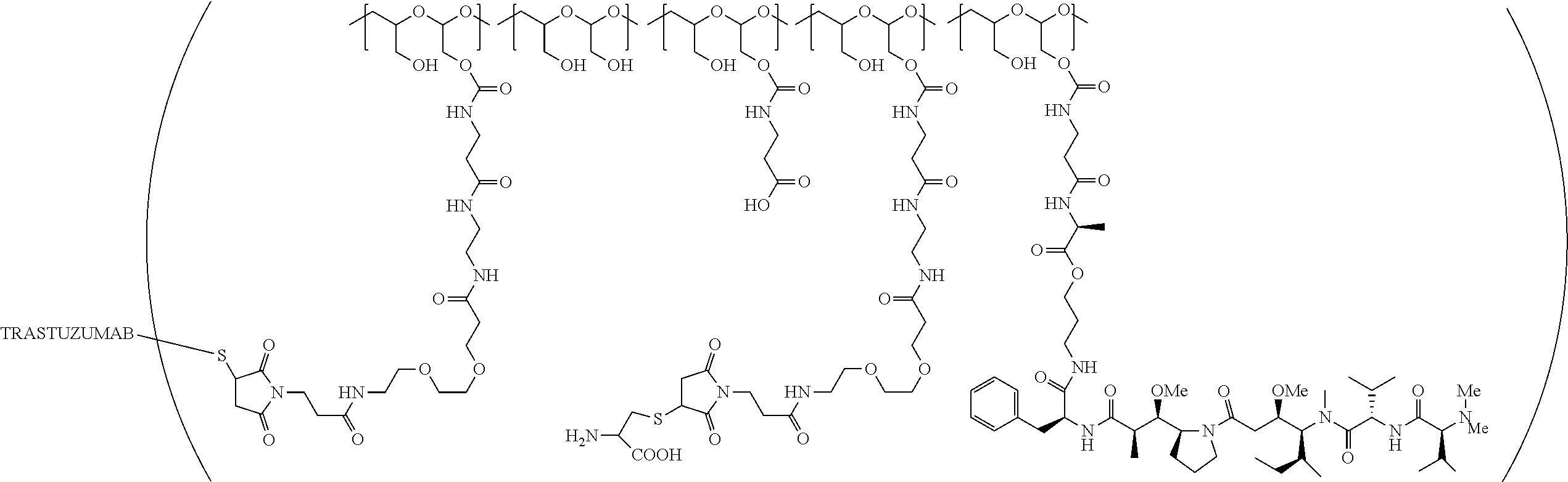 The results in Table IX showed that the PBRM-polymer-drug conjugates had a half-life of ˜120-154 hours (˜5-6.4 days) with an AUC0 to 336 of ˜19 to 25 μg·hr/mL and were independent of the AF-HPA to trastuzumab ratio of the PBRM-polymer-drug conjugates.
